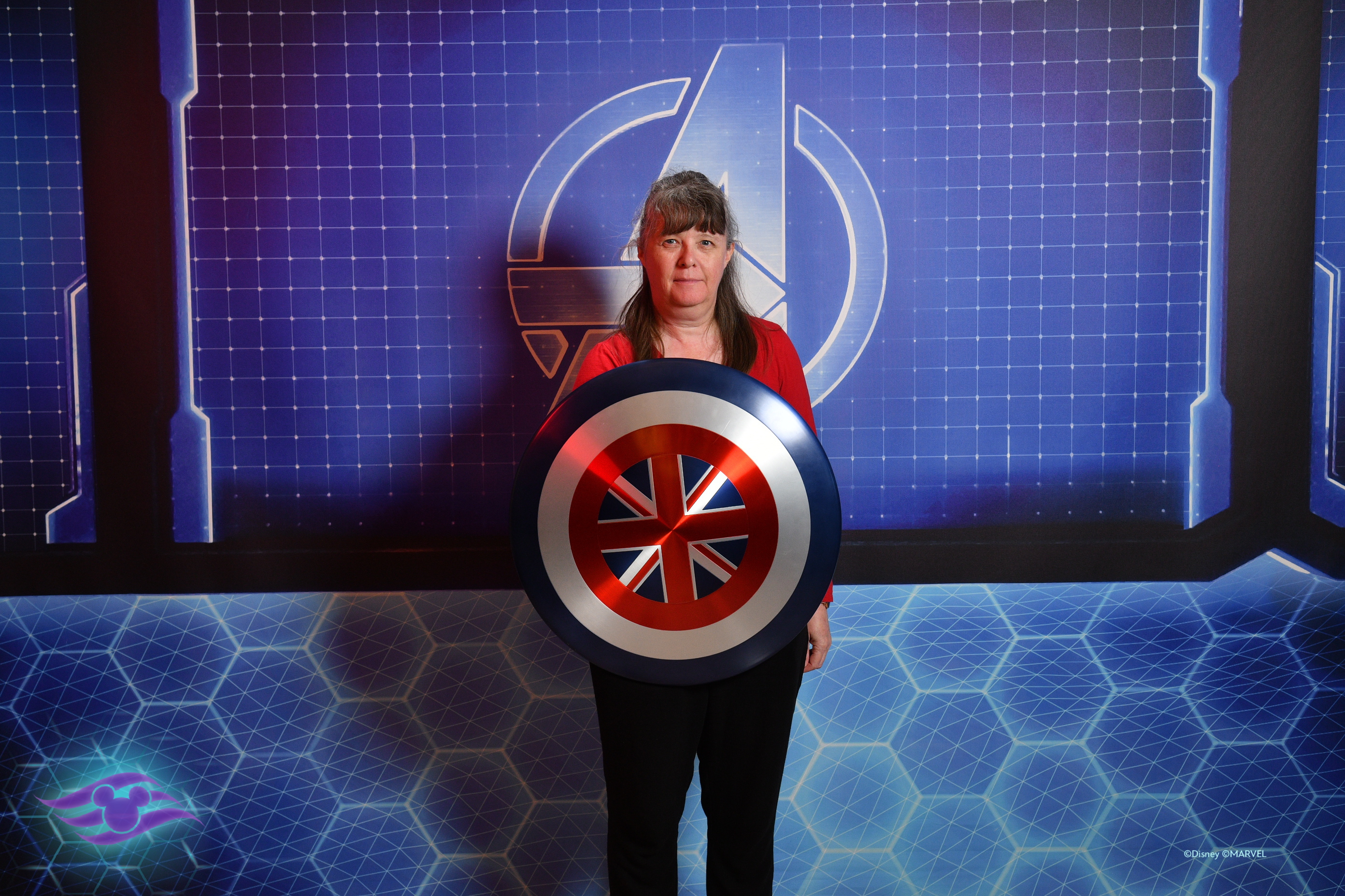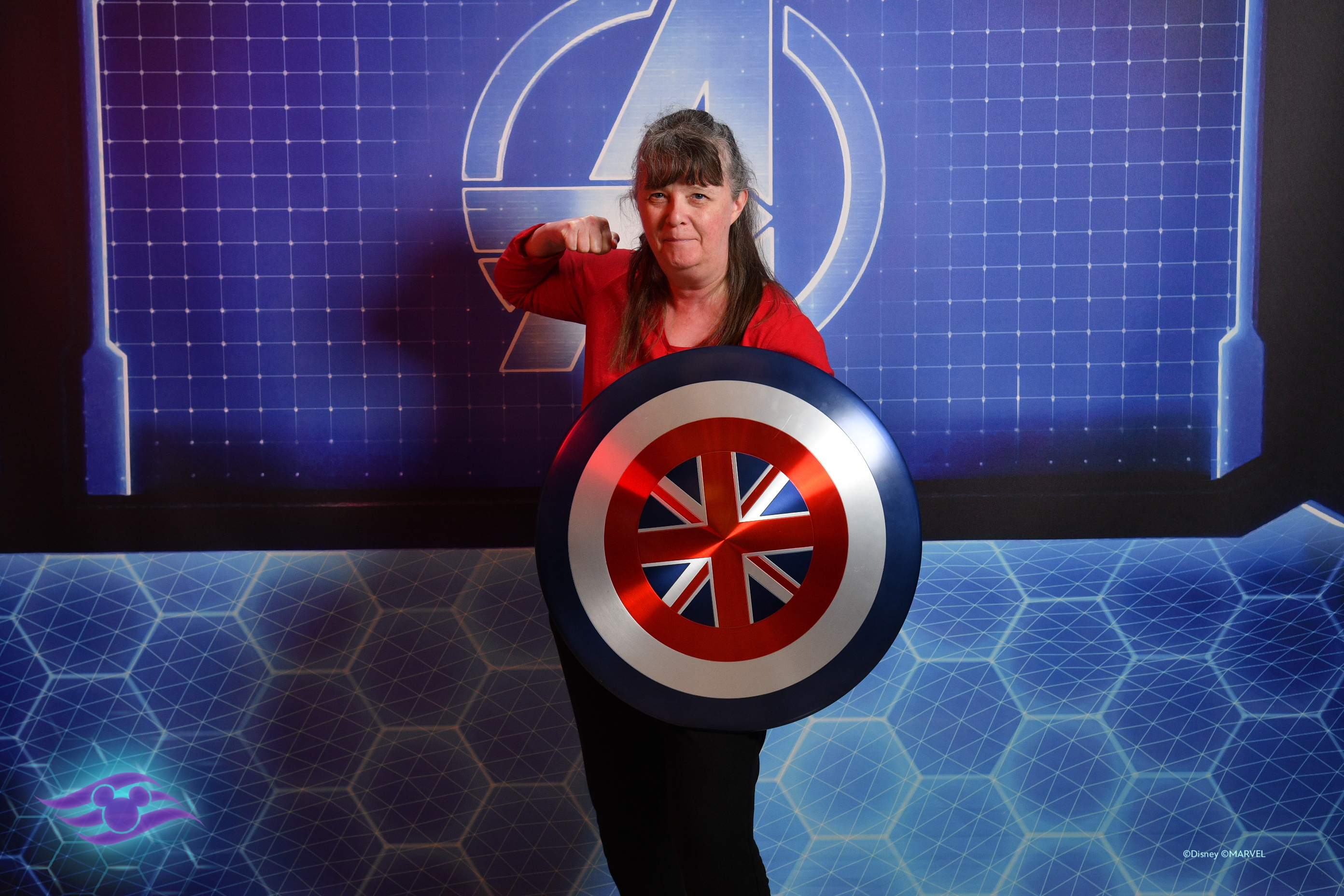 Susie Roger with Captain America's Shield